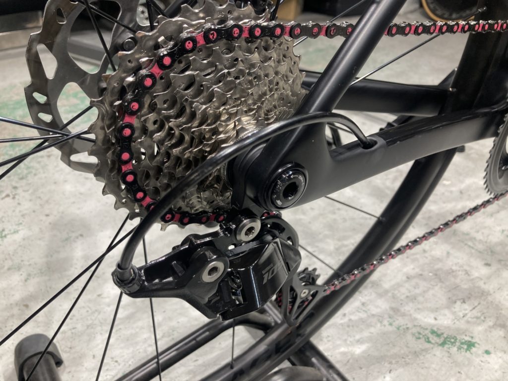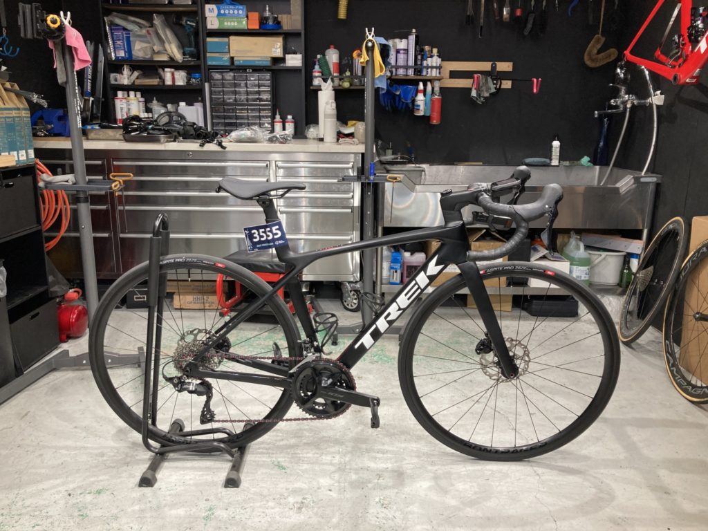 今回、「トレック マドン SL 5 ジェネレーション 8」に乗られているお客様より、トライアスロンで使用した為、定期点検とBIKE WASHのご依頼を頂きました。