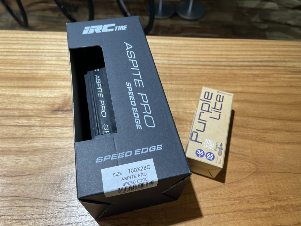 タイヤはIRC(井上ゴム)の数量限定生産モデルであるASPITE PRO SPEED EDGEを選びました。