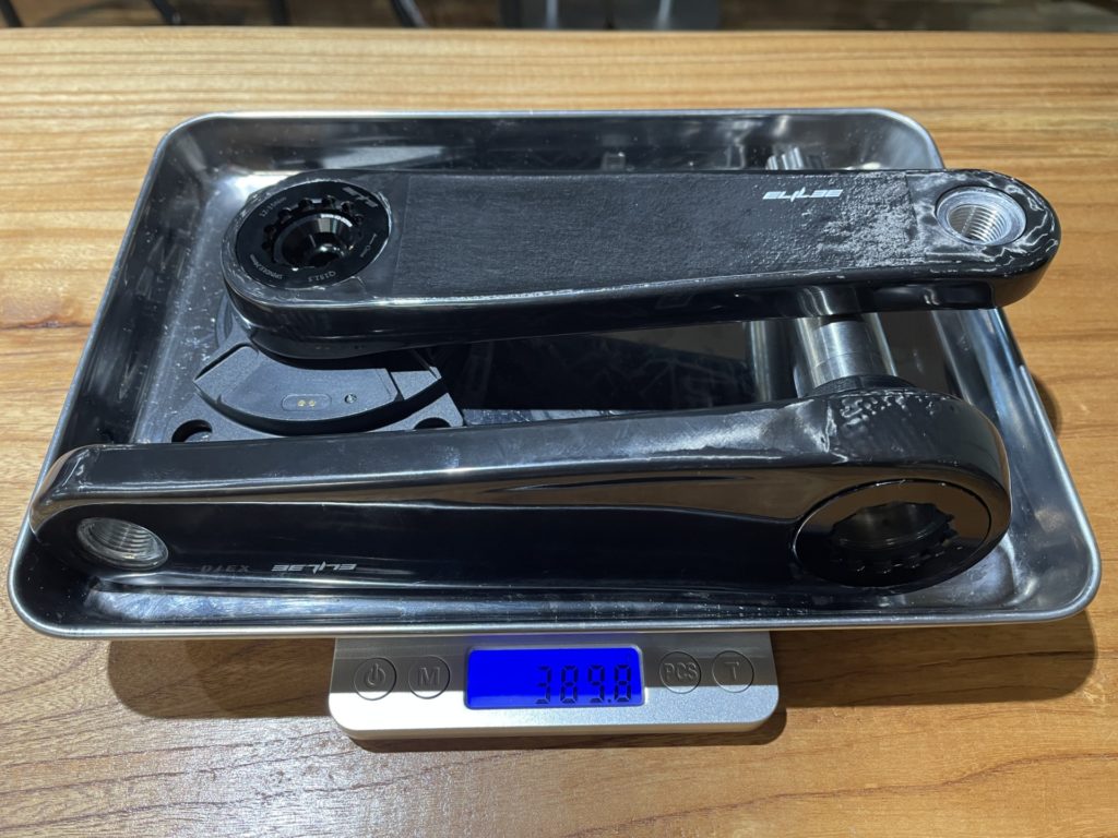 カーボンクランクとパワーメーターを合わせた重量は驚きの389.8g。