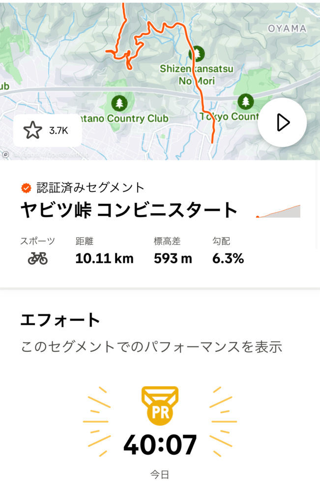 ちなみにこの状態で11月初めにヤビツ峠を登ったところ、タイムはStravaセグメントの旧コンビニスタートで42分51秒(平均パワー210w)でした。
