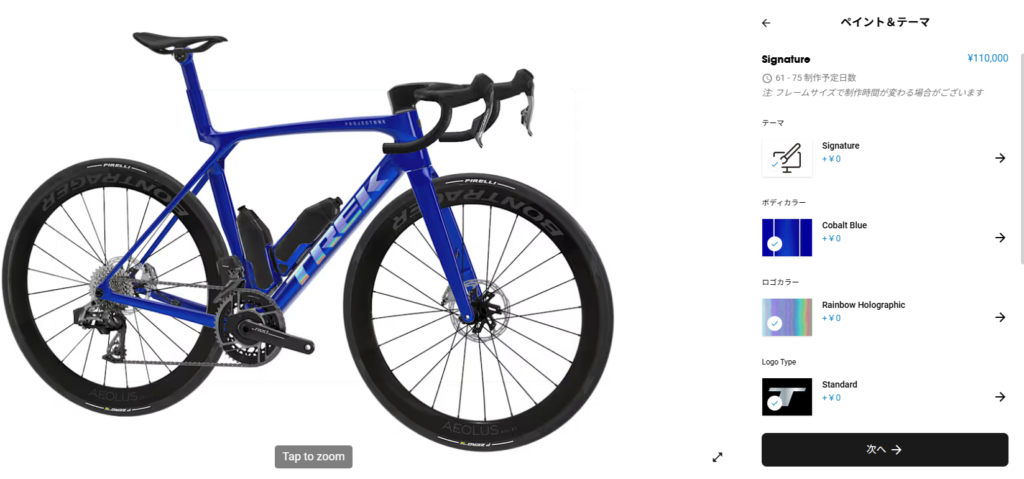 用意されているカラーパレットの中からボディカラー・ロゴカラーを選択可能。またロゴのタイプやヘッドバッジカラーも選択肢の中から変更可能となります。