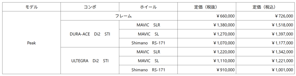 ロードレースバイクとして開発されたPeakはトライアスロンでもエリート選手の出場するドラフティングレースに最適なバイクとなります。