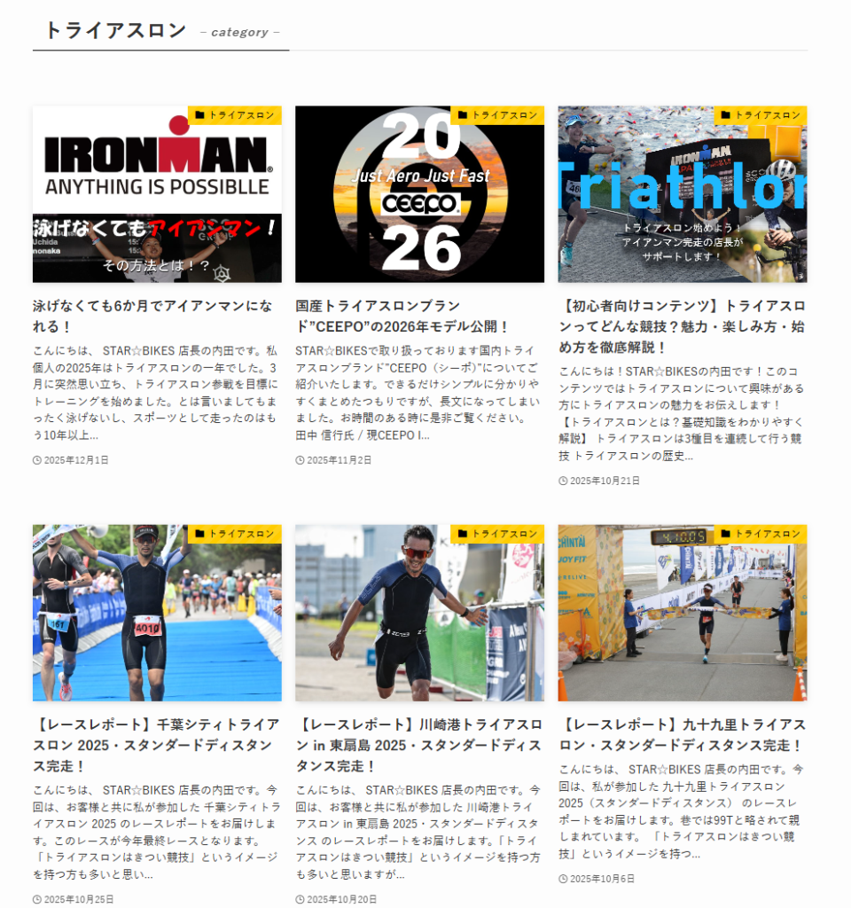 STAR☆BIKESでは店長の内田をはじめトライアスロンにも力を入れたショップになります。