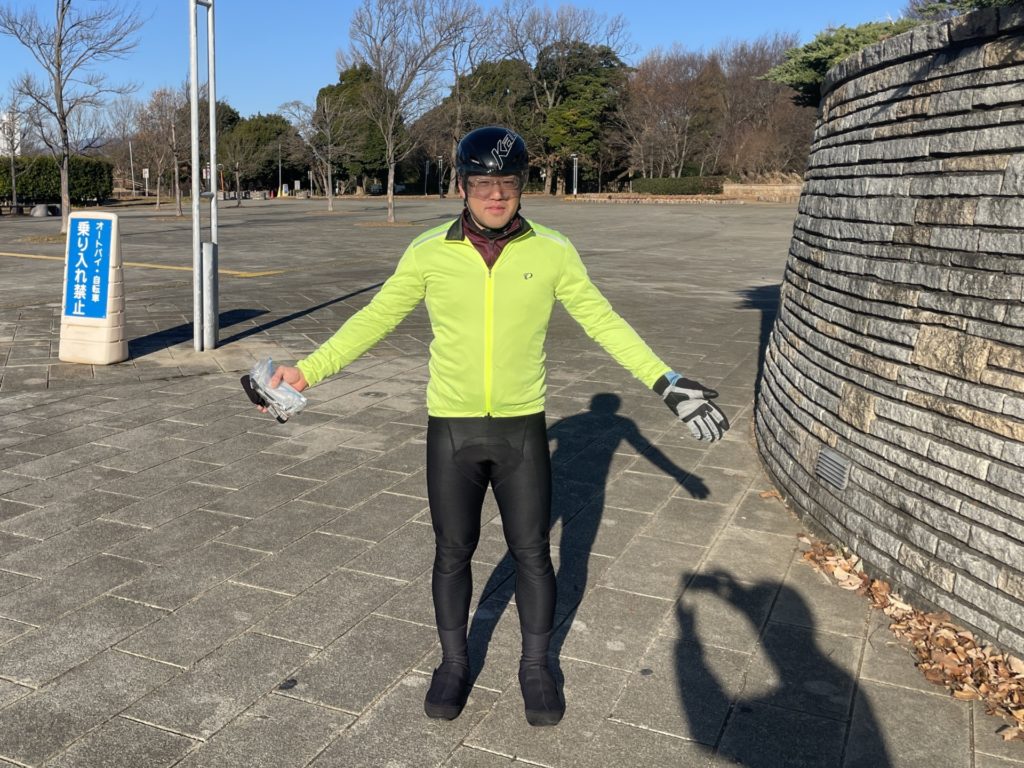 寒さが苦手な私としてはこの温度での走行は辛いのですが、しっかりと真冬対策をすることで楽しく走ることができます。参考までにこの日の装備ですが…