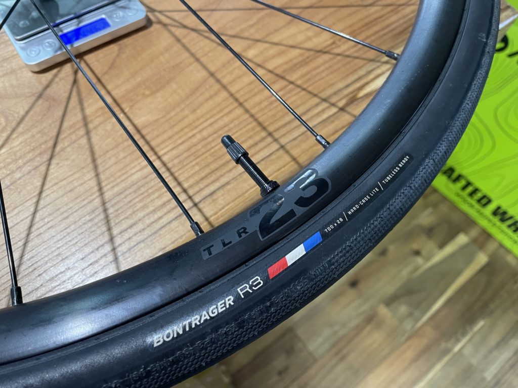 今回お取付けしたMadone SL 5のホイール仕様はBontrager Paradigm 23ホイールにBontrager R3 TLRタイヤを組み合わせた仕様になっており、ボトルやツールも含めた総重量は10.14kg。