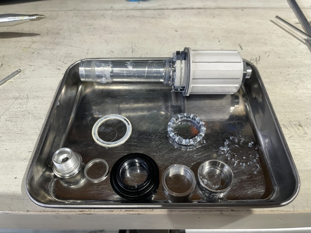 オーバーホールはフレーム単体まで分解して洗浄し、消耗品の交換を行い組み直します。