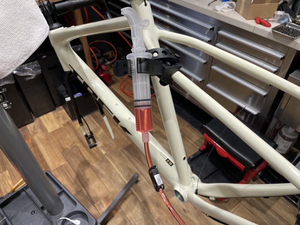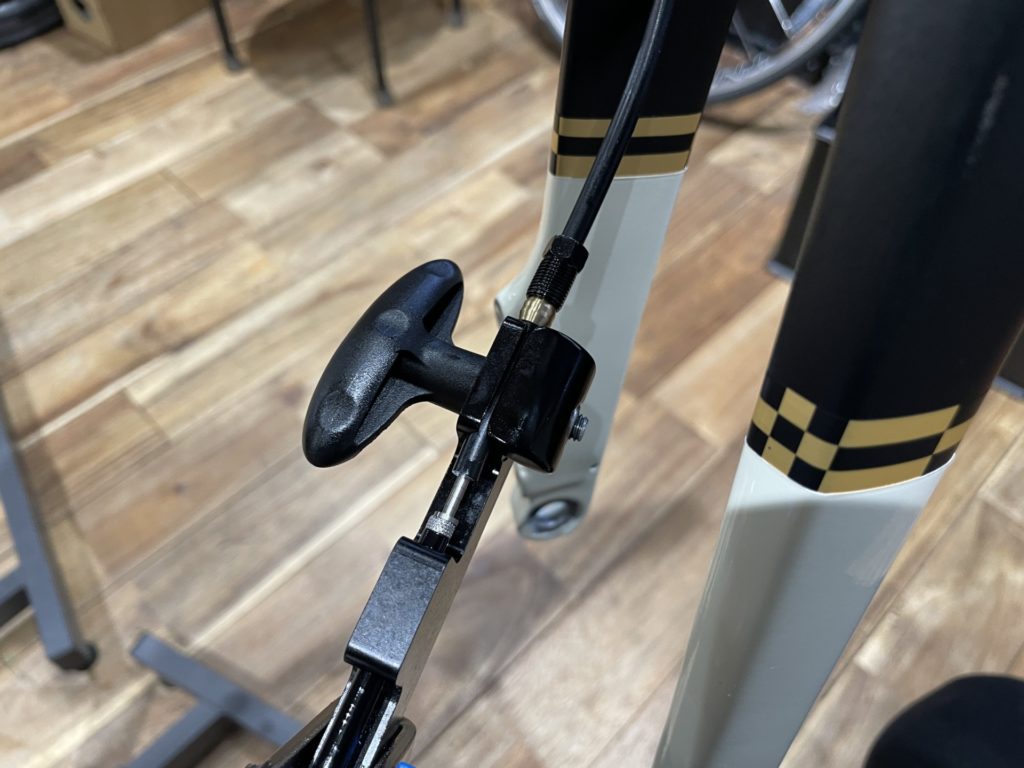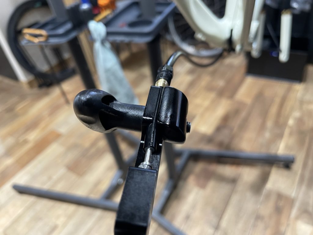 油圧ディスクブレーキの場合、ブリーディング作業(オイル交換)を行います。