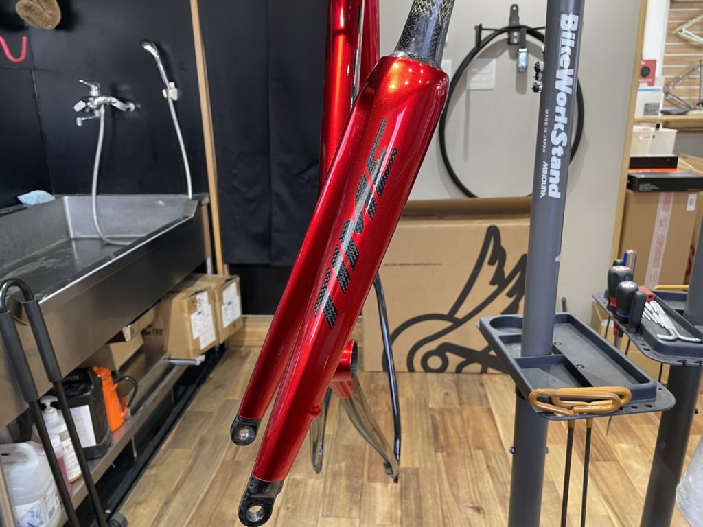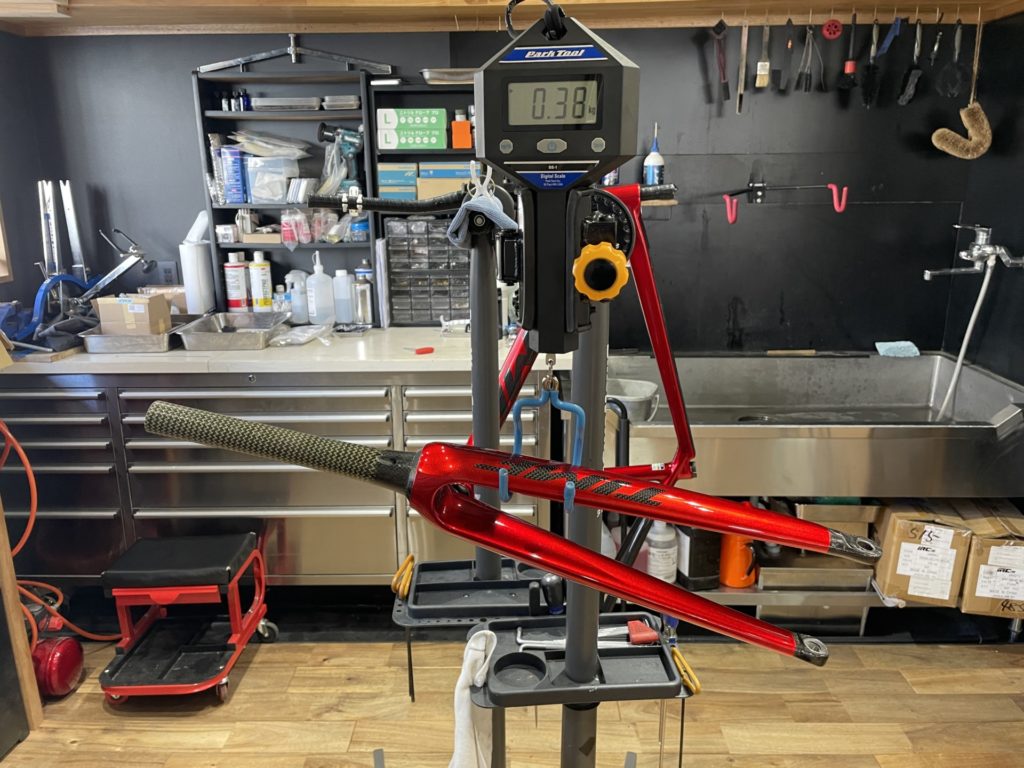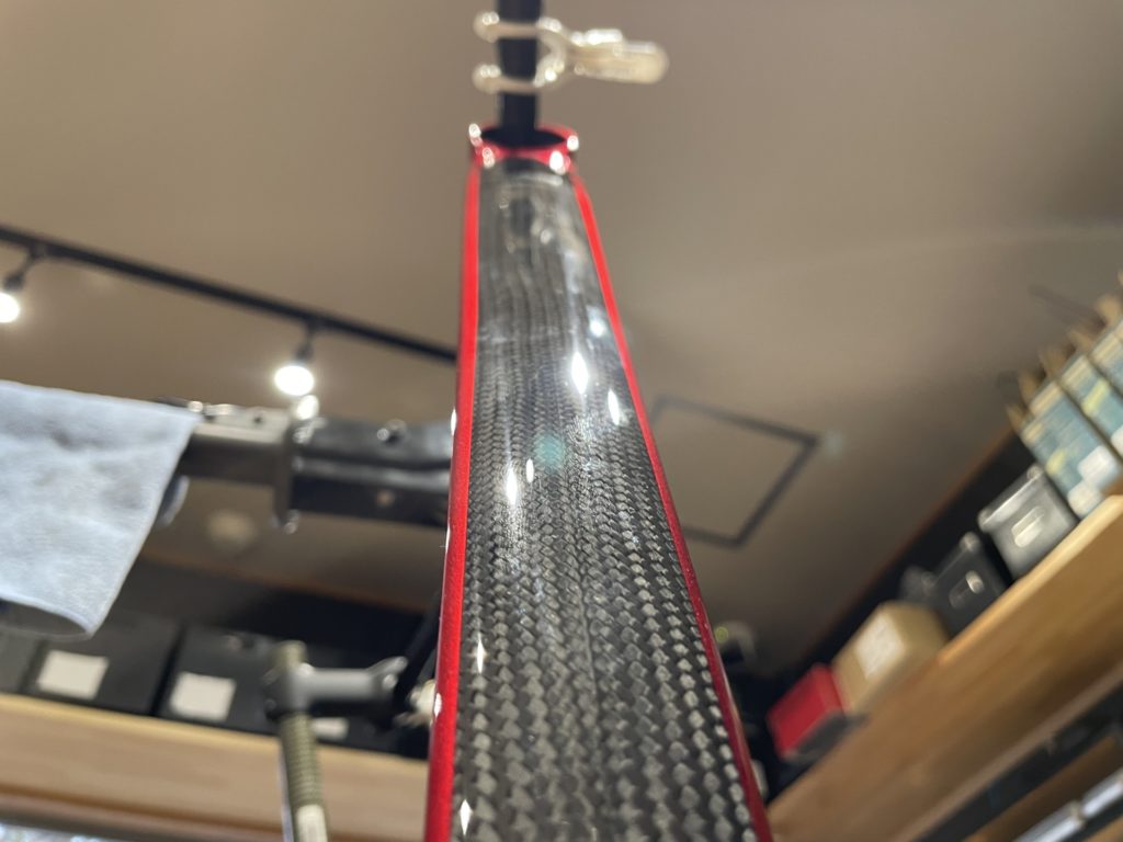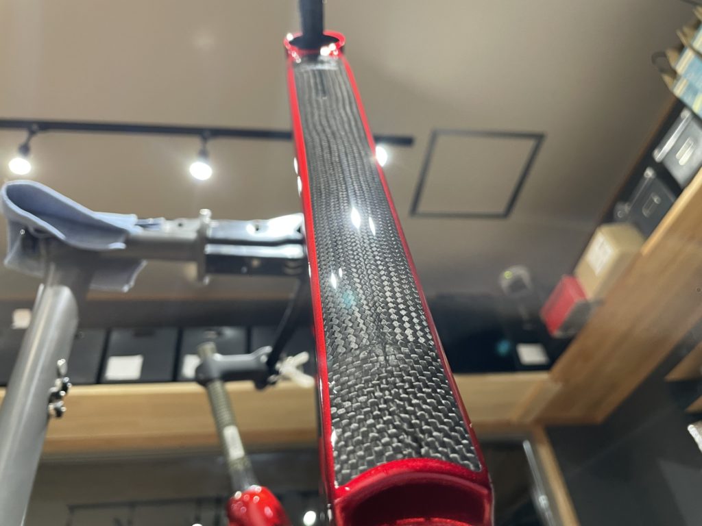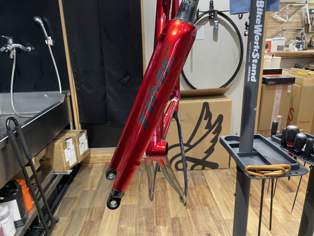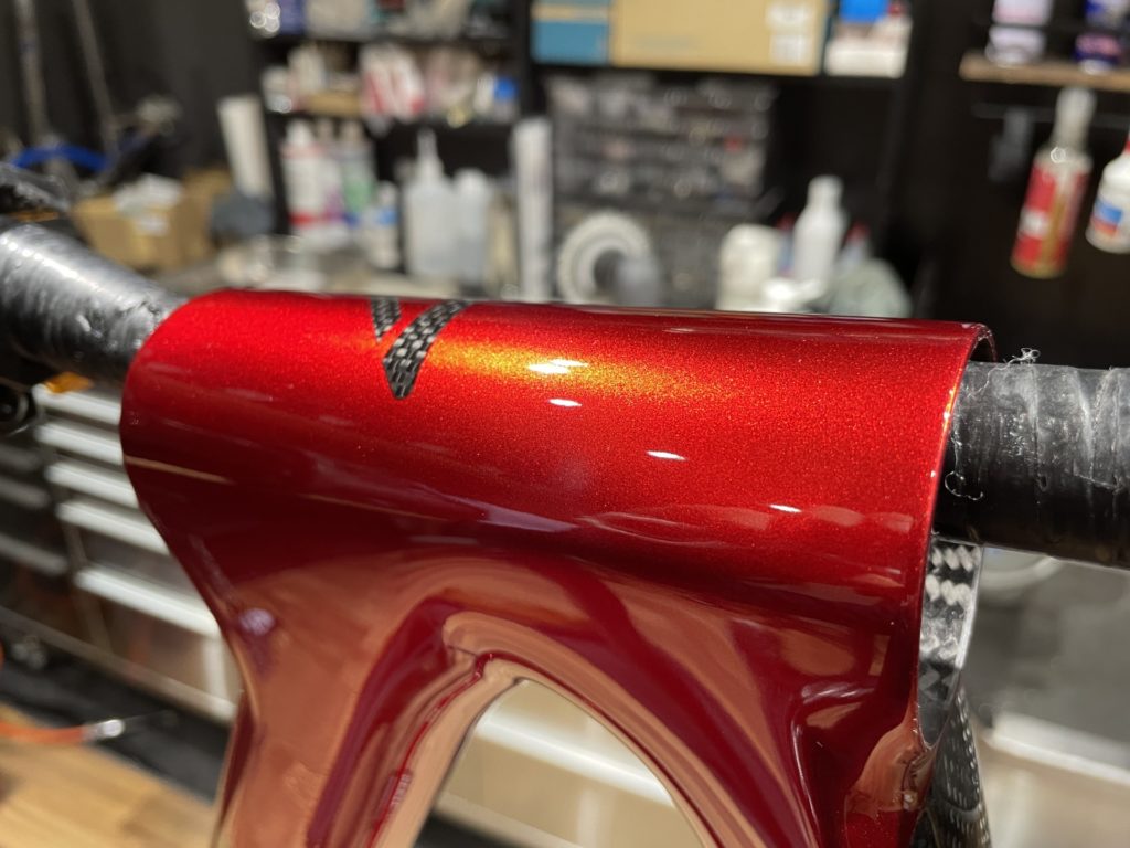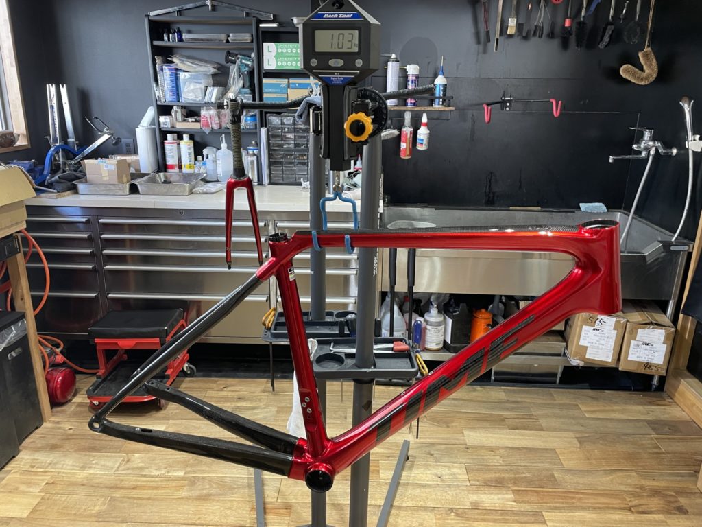 TIME ALPE D’HUEZ DISC F/S(タイム アルプデュエズ ディスク フレームセット)カラー:ブリリアントレッド(V35)にガラスコーティング「ガラスの鎧(クレストヨンド社)」を施工しました。