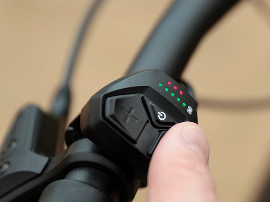 操作は簡単です。左手側のコントローラーで、アシストレベルを調整することが出来るほか、バッテリーの残量の確認も行えます。