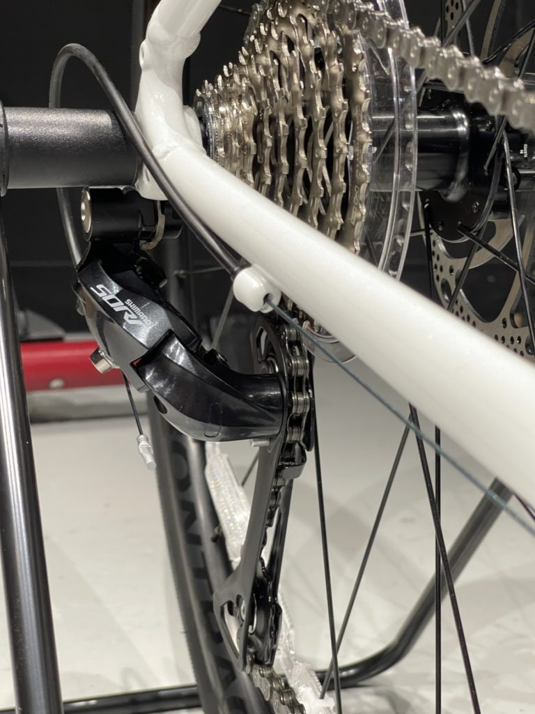 車体には主流のディスクブレーキが装着されており、咄嗟の減速にもばっちり対応!12mmスルーアクスル仕様となっておりますので後々の拡張性も問題ありません。さらにボトムブラケットやチェーン、カセットスプロケットと言われている目立たない部品まで手を抜かずSHIMANO製品を使用しているのが嬉しいですね♪