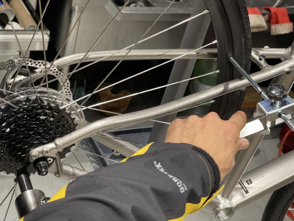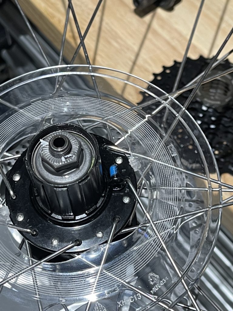 いつものようにステッカー類をすべて外すところから”パーフェクト組み立て”はスタートします。生産工場からSTAR☆BIKESまでのお勤め、ご苦労様でした。次に行うのはリアディレイラーハンガーの曲がり確認。初期状態ですでに曲がっていましたので修正。そして車輪を外すとリアドロップエンドに違和感が。。塗装が大きくよれてますね。反対側から見てみると、パーツにバリが残っていて、そのまま塗装工程まで流れてしまってことが分かります。そして後輪の取り付け工程から梱包・箱詰めまで誰にも気が付かれることなくSTAR☆BIKESまで届きました。正常な車輪の固定がなされていなかった形跡までしっかりと残っています。不要な塗装を取り除き、バリを除去して再生しました!あのままでは車輪のセンターが出ませんのでブレーキのセッティングやシフト異常が出ていたでしょうね。初期不良を最初から疑いながら作業してくれるショップでなければ、ブレーキの調整やシフトの調整で済ませてしまっていたと思います。そしてスプロケを外しますと何故かフリーボディの横にブレーキローターを固定する6ボルトが出てきました。付け忘れかなと思い、前後輪のブレーキローター確認するも異常なし。。。ブレーキローター取り付け作業中に落としたと思ったけど探して見つからず諦めたのかな?