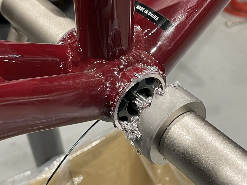 またBBの取り付け方向に対して完全に直角な面を出すことでBBが確実に固定でき駆動ロスを一切生じさせない。
