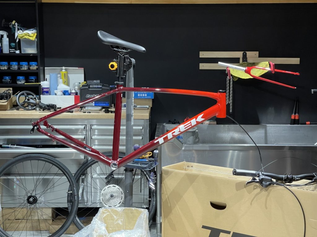 今回オーダーいただきました「TREK FX3 」は前輪を支えているフロントフォークをロードバイク同様にカーボン製とすることで快適性向上・軽量性向上・剛性向上を実現したアルミ製FXの上位グレードになります。