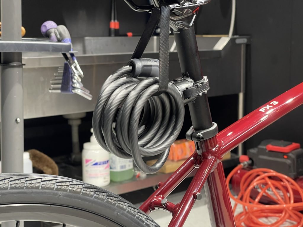 STAR☆BIKES定番のカギです。剛性の高い金属製ロックでモータースポーツでも有名なABUSと30日間満足保障のBontragerのダブルネームは安心ですね。