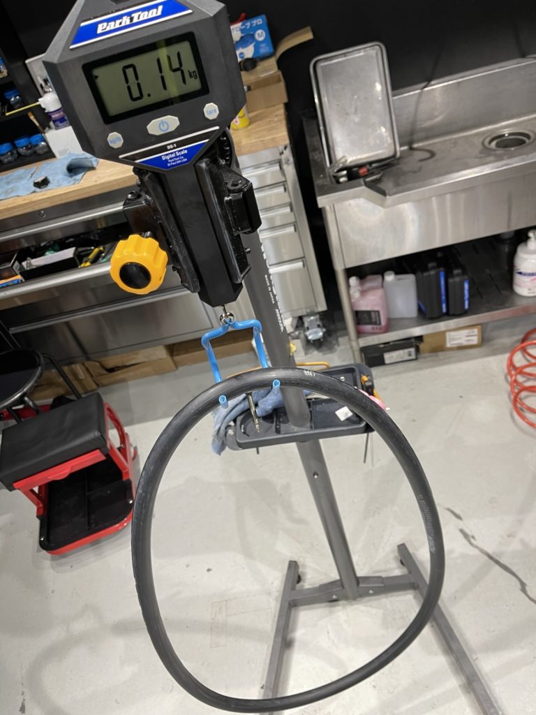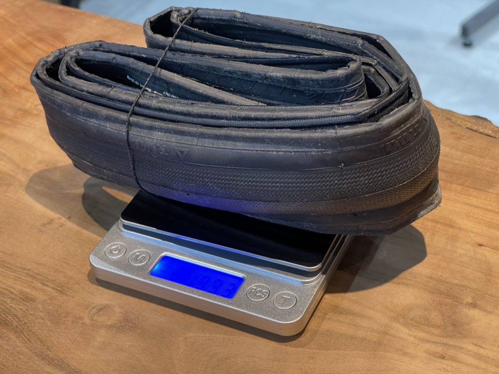 まずは手近なところからチェックします。。Bontrager R1タイヤの重量が。。しかもロードでワイヤービード。