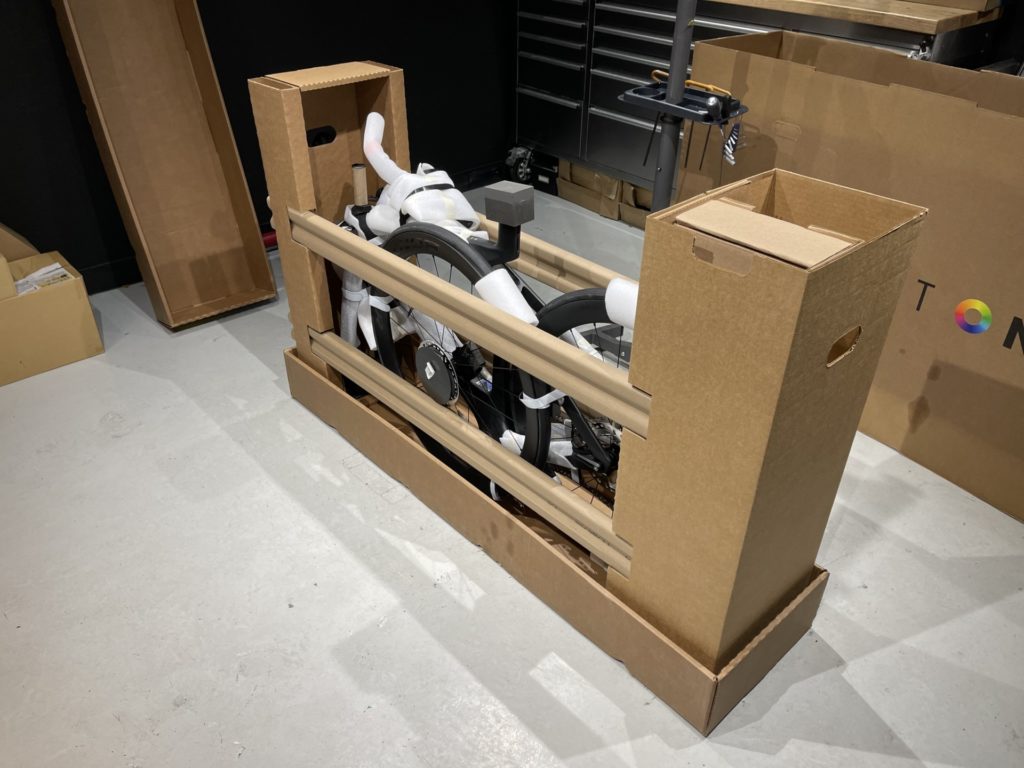 両サイドに渡る超硬質な紙製のバーと本体との間には当然緩衝材があります。