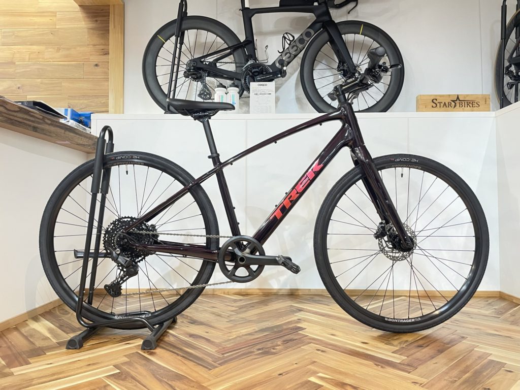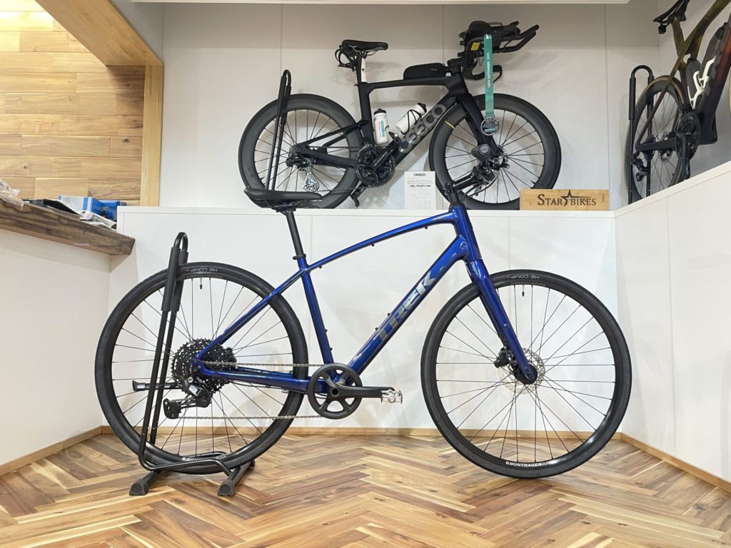 今回選んでいただきましたスポーツサイクルはクロスバイク「トレック FX 3 ジェネレーション 4」です。こちらのアルミフレームにカーボンフォークを採用したFXシリーズの上位モデルになります。スポーツサイクルの入口とされているクロスバイクなので女性... -